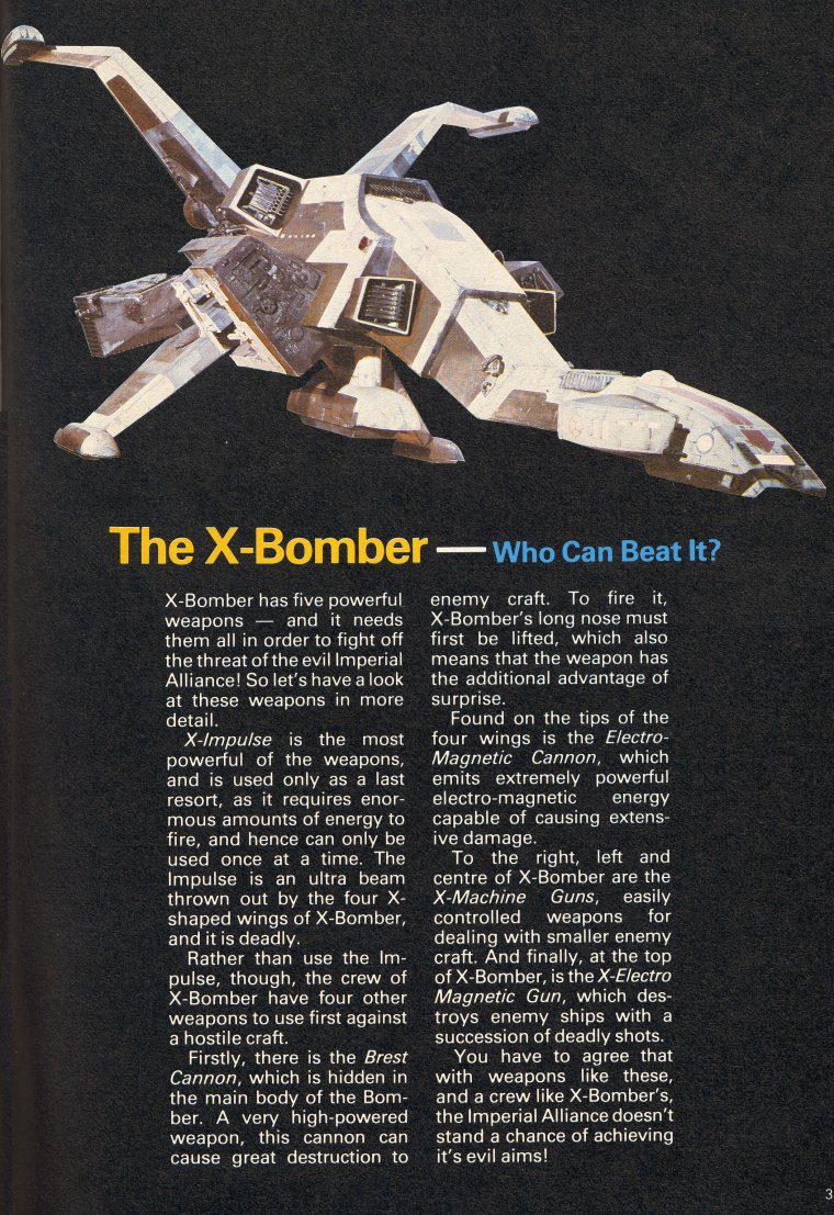 Paul Green's interview has shed some light on how the Annual came into being and explains some of the discrepancies present between the names in the series and the names used in the Annual. It's actually copyrighted 1983 - which was the year in which the series ended its first run. It's quite standard annual fare - although there aren't any comic strips like there were in the Terrahawks annual of the time. However, the stories are well illustrated and frequently in full colour.There are also a couple of educational pieces thrown in for good measure, about space history and the zodiac. Of most interest, though, are the pages reproduced below (one of which is the contents page, just for completion!) which include shots from the series itself as well as the Annual's take on the technology of the series. If you compare and contrast the Annual's wording with that of the Look In double spread you'll see that it's actually the same word for word in its description of the weapons - perhaps because it was taken from publicity material released by Enoki.