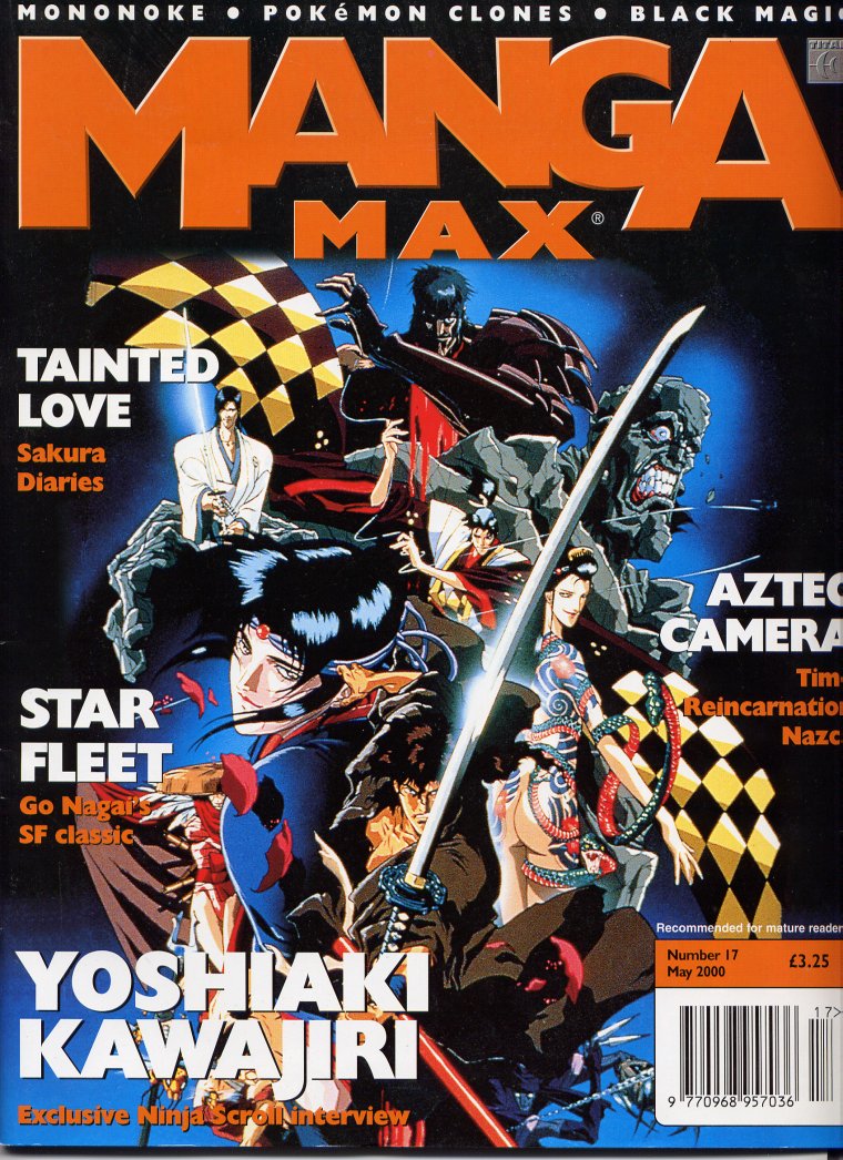 The Manga Max article was a thing of beauty before you even got inside the magazine - or it would have been, had this alternative front cover for Manga Max 17 been used; the first page of the article sets the tone. Both of those images are from Phil Hession's (the layout artist) homepage. The actual cover of MM 17 has the same wording, but the emphasis is on the Yoshiaki Kawajiri text with the illustration for that story taking the place of the imposing Dai-X illustration. Phil's work is original - please do not copy it without his permission. Click here to view the cover which was actually used.3 September 2001 - here's the good stuff! Steve Kyte, the illustrator of the Manga Max article, has started to provide me with the original and production artwork he created and collated during his work on the article. The images below will be added to as Steve re-creates some of them, and some were not used in the magazine for space reasons. Please take note of the copyright notices on the images - they are very impressive pieces of work and should not be reproduced without Steve's position - the intro page to the article has his contact details.